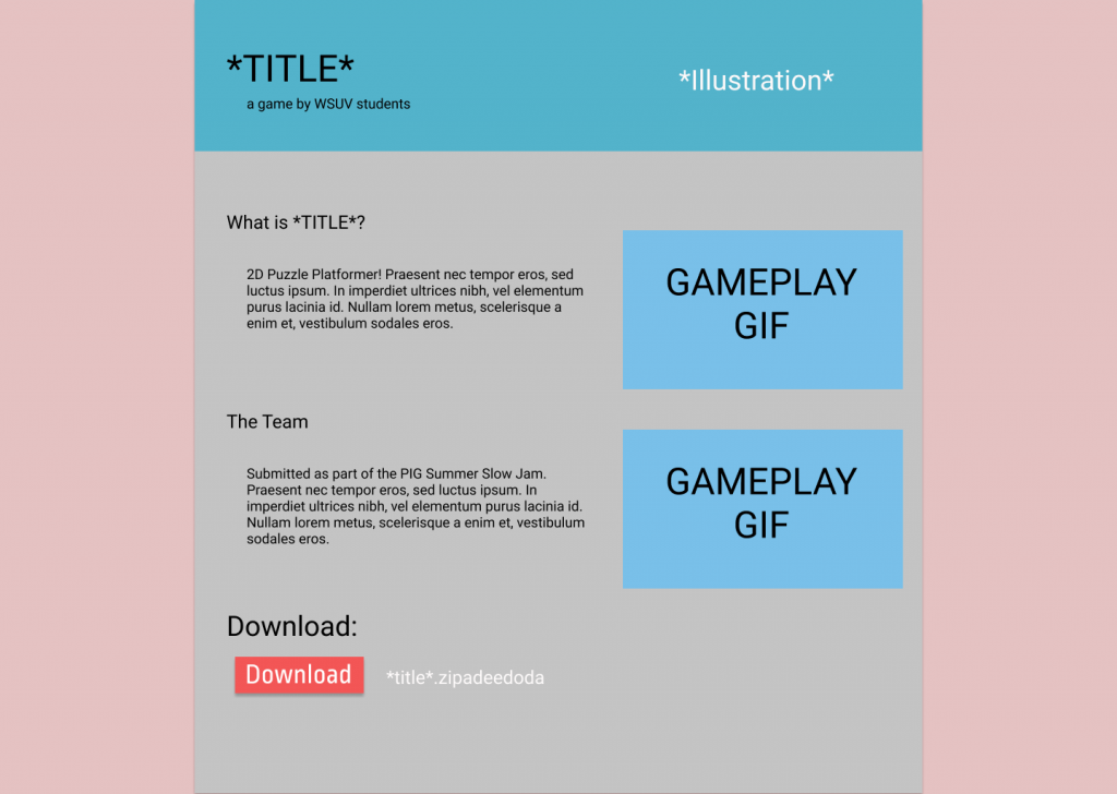 The software Figma allowed us to created a low-fidelity wireframe of the itch.io template so that our web developers could better envision the elements they would populate it with. While it could be seen as a drawback that we could not create a prototype for this website, the intuitiveness of itch.io and it’s page builder allowed us to implement changes into the final product within seconds.